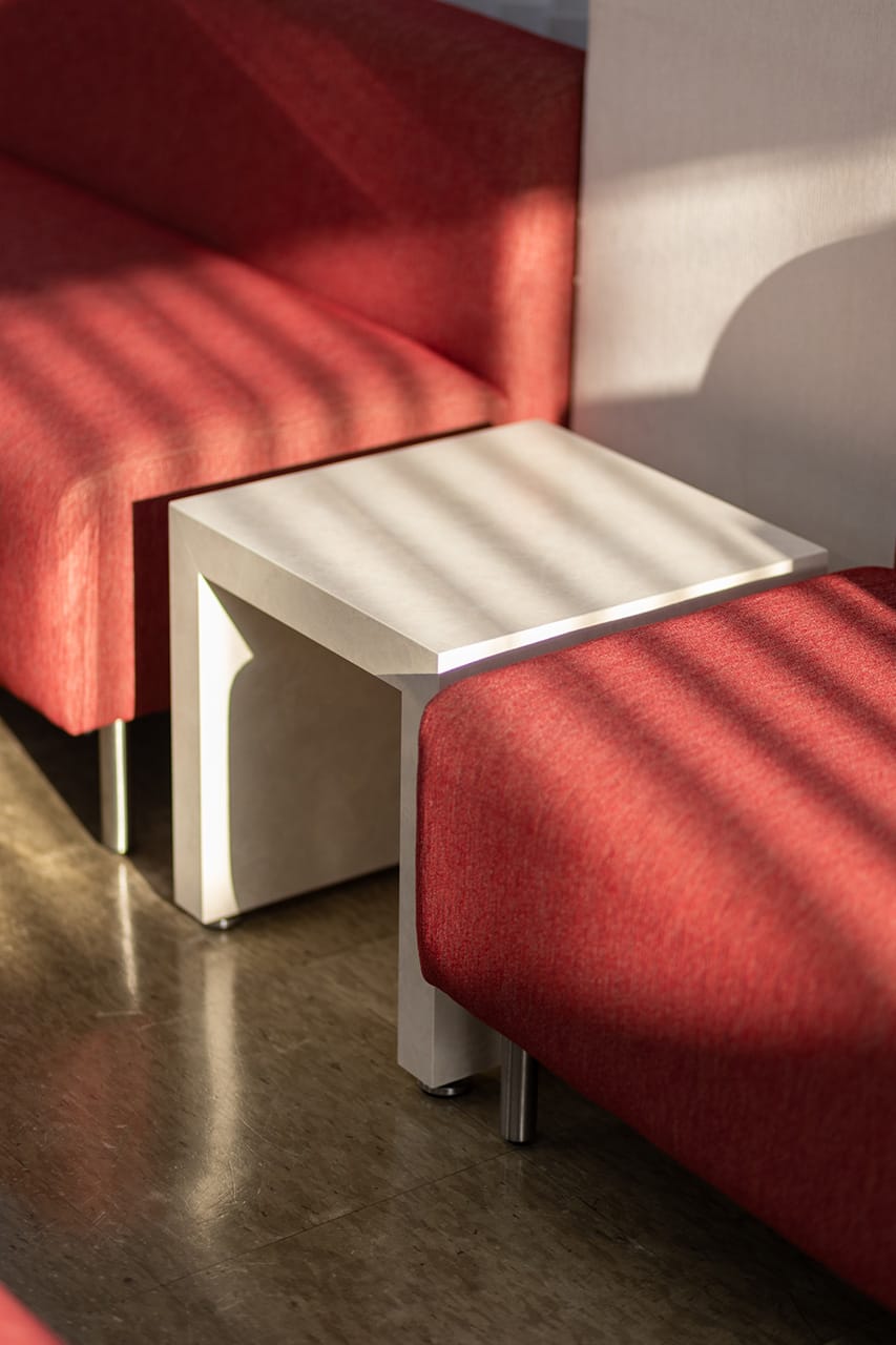 銀行を利用するお客様の待合スペースにソファ類とサイドテーブルを納品