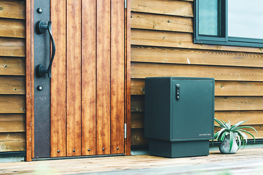 角に丸みを帯びたデザインで、モダンな家屋から様々な玄関先に自然に溶け込む宅配ボックス。鍵を持たずに開閉可能なダイヤル錠の採用をはじめ機能面も充実しています。