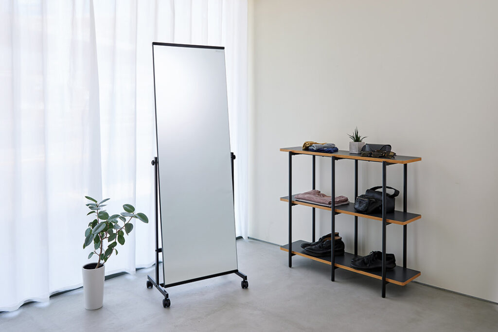 ホームユースをはじめ、ビジネスユースやダンスやヨガなどのスポーツ時にもおすすめのノンフレームタイプのスタンドミラー。既存品のメッキフレームに加え、ブラックフレームが登場しました。