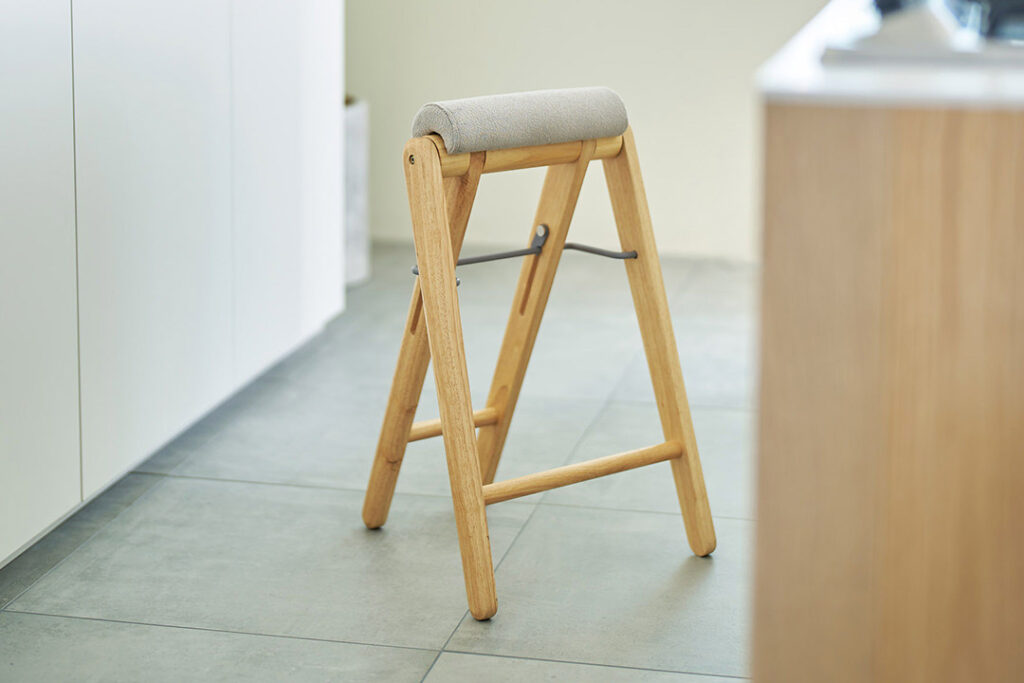 キッチン台や洗面台で活躍する、ちょい掛けタイプのハイスツール。折り畳めるのでちょっとした隙間に収納することができ、必要な時だけサッと広げて使える便利なハイスツールです。