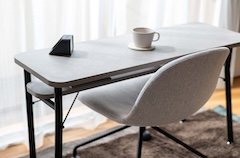 1本支柱で圧迫感がなく、コンパクトな空間で使いやすいテーブルです。