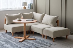 1つからでも使用可能なコーナーソファは2つ並べる事で2Pソファに。